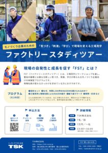 ファクトリースタディツアー(通称:FST)とは、工場見学とワークショップを通して、普段の業務とは異なる新しい気づき、刺激、学びが得られるモノづくり企業向けの体験型プログラムです。