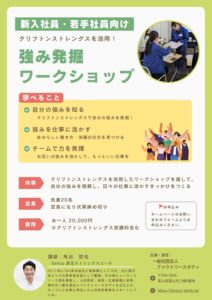 ファクトリースタディでは、人財の成長に必要な教育研修の場を提供しています。その一例として、クリフトンストレングスを用いた自分・他者の強みを探究するワークショップがあります。参加者主体の体験型で、時には複数の企業と合同で開催され、教養の他にも多くの気づきや刺激が得られます。